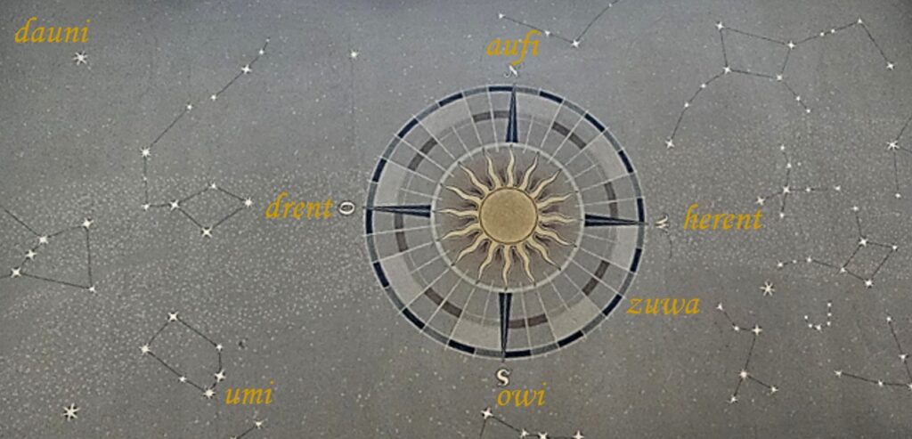 Ich habe die Kompassrichtungen hier aber in meinem Dialekt ergänzt – so, wie man sie bei uns in Niederösterreich sagen würde: