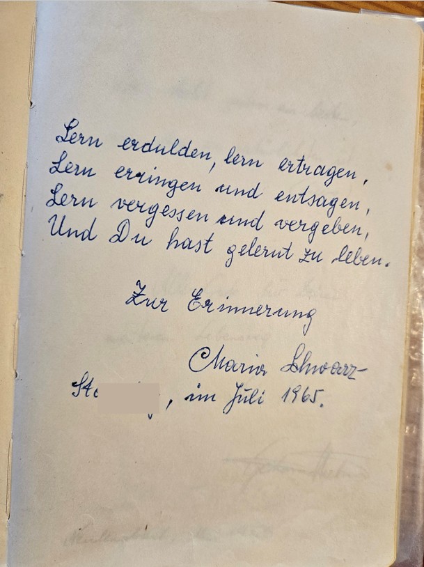 In einem Stammbuch (mehr oder weniger der „Vorgänger“ von heutigen Freundschaftsbüchern) entdeckte ich folgenden Eintrag aus 1965: